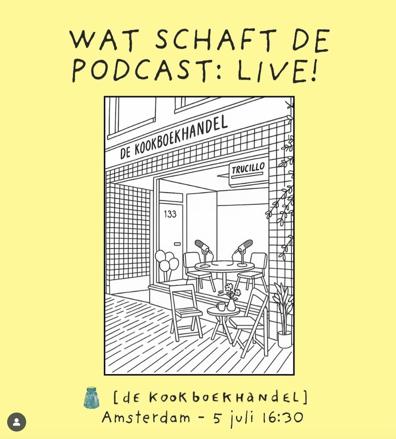 Wat Schat De Podcast sluit aanstaande zaterdag 5 juli om 16:30 het seizoen af met een speciale live opname, op een bijzondere plek: de Kookboekhandel in Amsterdam 📚 Wil jij erbij zijn? We hebben plek voor slechts 20 luisteraars. Meld je hier aan:https://watschaftdepodcast.com/live/